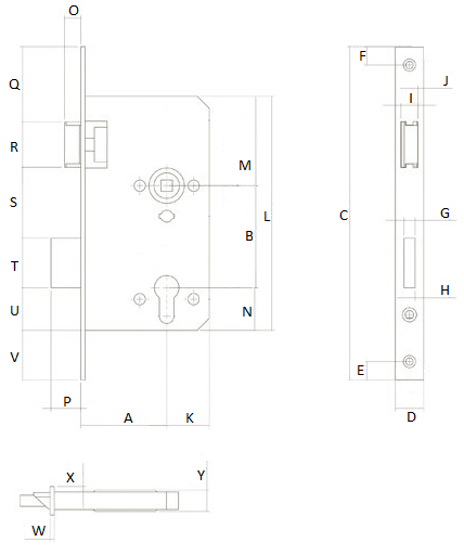 Einsteckschloss SATIN NICKEL 50x47mm gerade